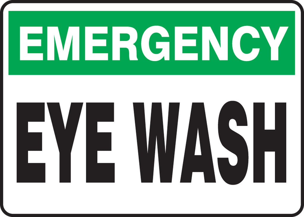 Accuform 10" X 14" Green, Black And White Adhesive Vinyl Safety Signs "Emergency Eye Wash"