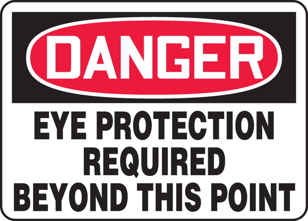 Accuform 7" X 10" Red, Black And White Plastic Safety Signs "Danger Eye Protection Required Beyond This Point"