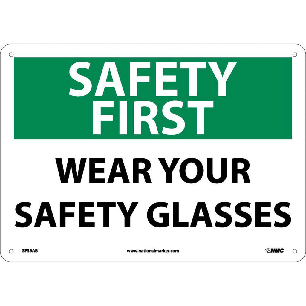 SAFETY FIRST, WEAR YOUR SAFETY GLASSES, 10X14, .040 ALUM