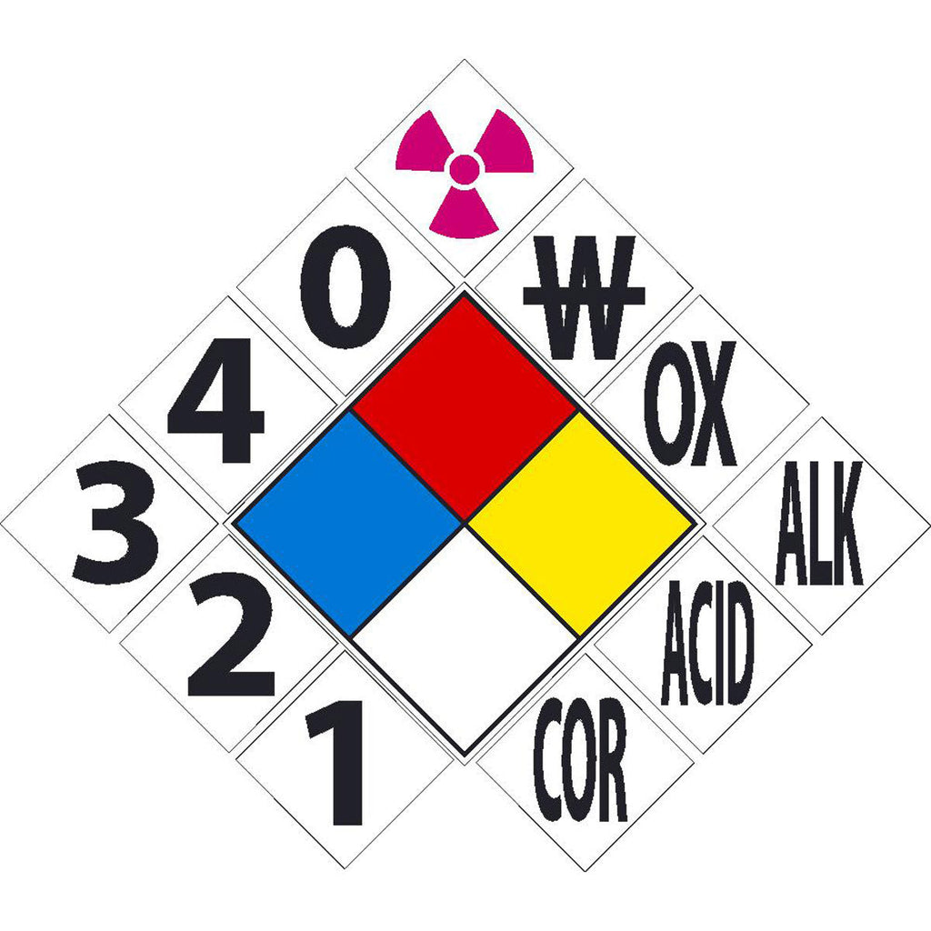 HAZARDOUS MATERIAL KIT, 15.5X15.5 RIGID BACKBOARD, WITH 1 EACH OF 6" SYMBOLS AND 3 EACH OF NUMBERS 1 THRU 0 IN P/S VINYL